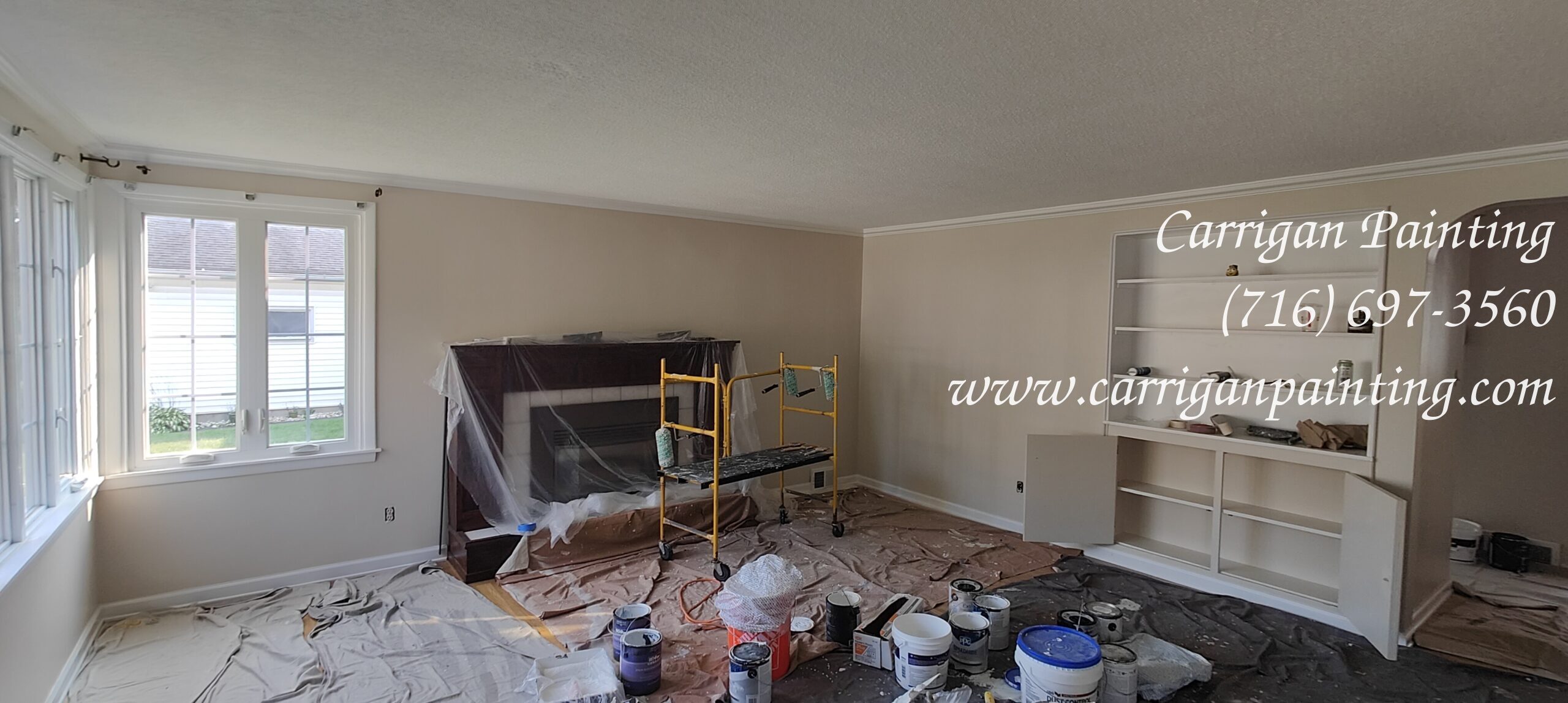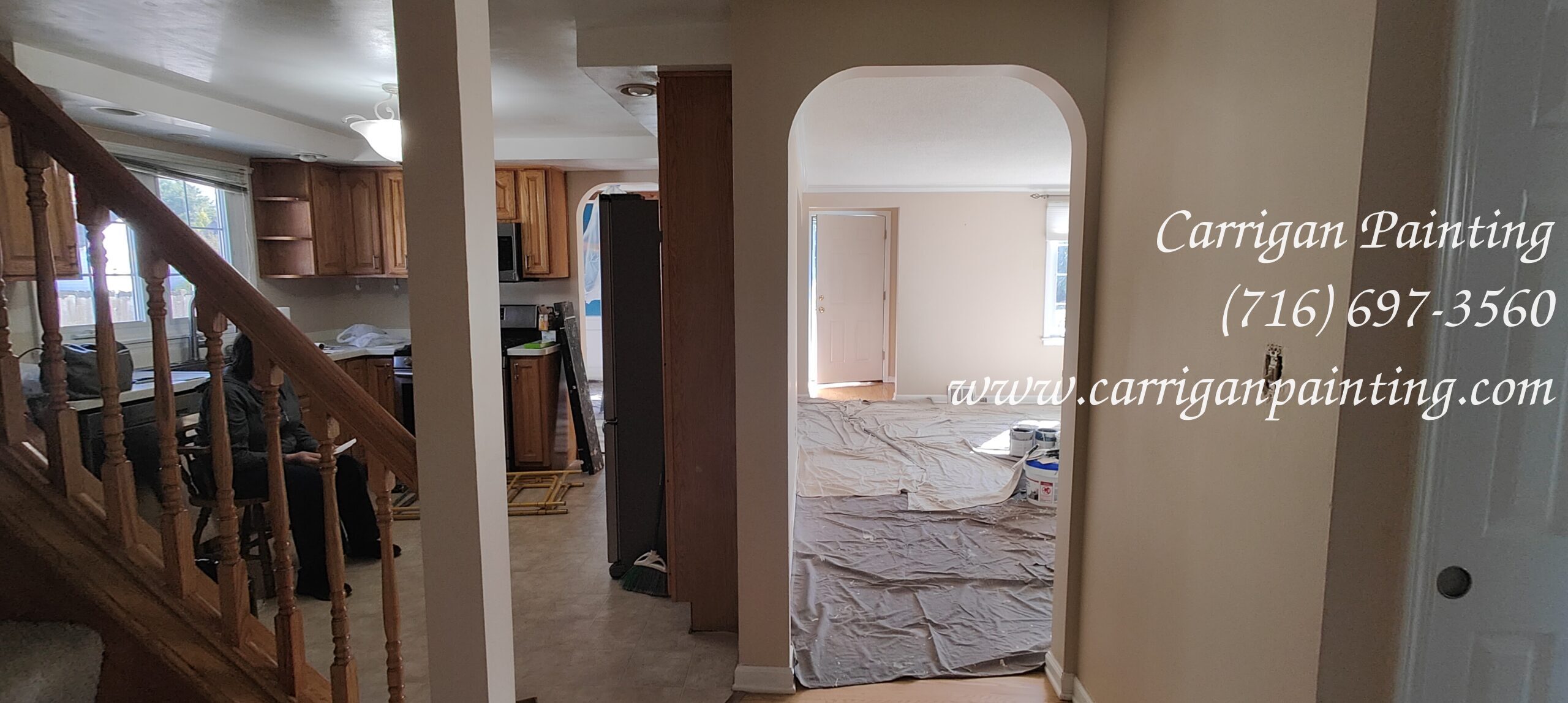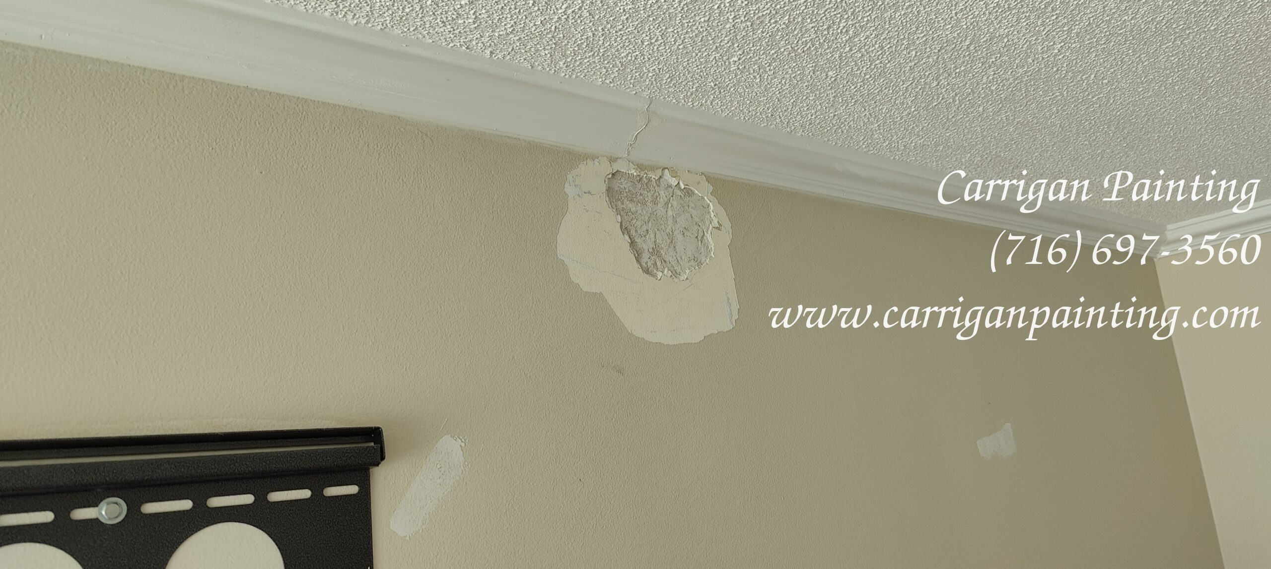 Once the floors are covered, the windows, cupboards ect are adequately covered, we begin by pole sanding the ceilings and walls. Then we start patching. Some times, this can be extensive as we discover more damage. We want to fix as much as we can prior to begin painting as that will give us the best possible finish.