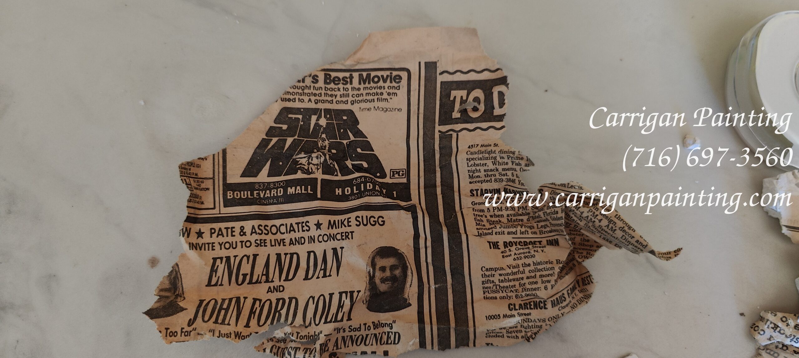 Below is a small collection of the newspaper we pulled out of the ceiling. We didn’t find any dates, however we determined that it was from the mid 1970’s . $2.50 for a fish fry! Wow!